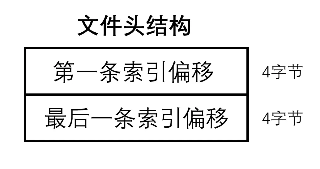 文件头共8字节,前4字节是第一条索引的绝对偏移,后4字节为最后一条索引的绝对偏移。
