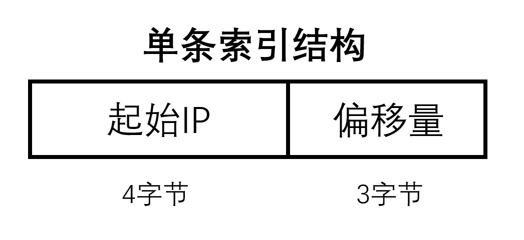 索引区由多条等长的索引连续排列而成,每条索引长度为7字节。单条索引由两部分构成,前4个字节为区间的起始IP,后3个字节为其余数据的绝对偏移量,指向记录区的一个位置。