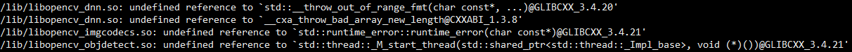 如因为opencv版本不匹配或编译opencv的gcc版本不匹配导致的错误