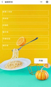 - “自拟菜单”功能模块:当用户又想吃“鸡公煲”、又想吃“黄焖鸡”,又想吃“鸡排饭”,又想吃……时,可以使用本功能,该模块为用户提供了一个可以自行填写的菜单,用户将自己想吃全部的菜品,填入这个菜单中,点击完成后进入转盘界面,我们会从这个菜品上的菜品,通过转盘,随机生成一个菜品,帮用户做出选择。