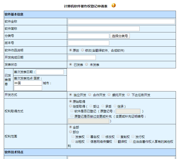1、软件著作权登记申请表: