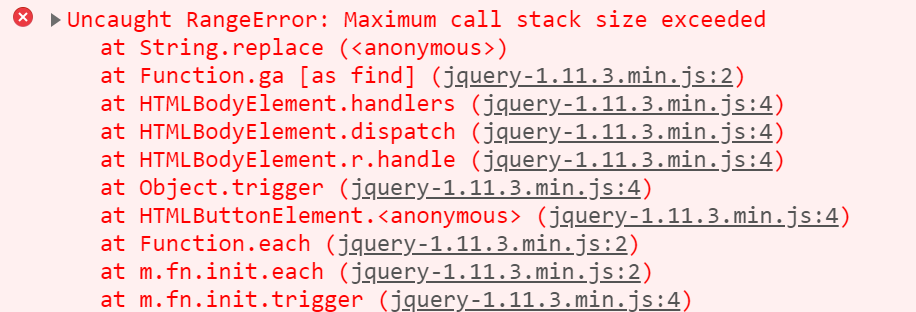 本人在项目的开发的过程中,在配置前端页面的过程中,页面会抛出图片中的异常,浏览网上的各路大牛的博客后,大致清楚出现以上的错误是由于JS的栈溢出。
