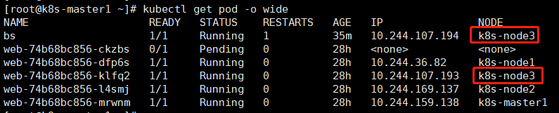 为什么bs这一pod被驱逐后没有在其他节点重建?因为bs是通过kubectl run创建的,不受deployment管理器管理。