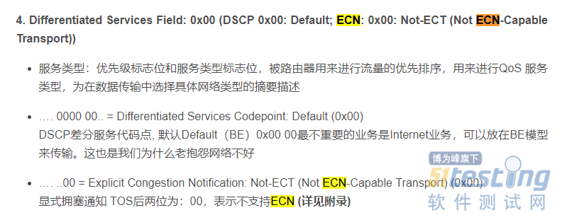 抓包后看IP层的Differentiated Services Field,看ECN标志位,如果后两位不是00,就证明网络支持ECN,也能捕捉到ECN信息了。
