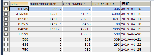SELECT SUM(tos.delivered_part) AS total, SUM(CASE tos.`status` WHEN 100 THEN tos.delivered_part ELSE 0 END) AS successNumber, SUM(CASE tos.`status` WHEN -1 THEN tos.delivered_part ELSE 0 END) AS errorNumber, SUM(CASE WHEN tos.`status` != -1 AND tos.`status` != 100 THEN tos.delivered_part WHEN 0 THEN tos.delivered_part ELSE 0 END) AS otherNumber, DATE_FORMAT(tos.`create_time`,'%Y-%m-%d') AS 日期 FROM t_sms_order tos WHERE tos.user_id = 1410 AND tos.`create_time` BETWEEN '2019-03-31 23:59:59' AND '2019-04-30 23:59:59' GROUP BY DATE_FORMAT(tos.`create_time`,'%Y-%m-%d');