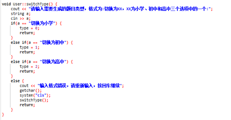 ②进入题目类型选择,输入正确则进入③,错误则循环②;