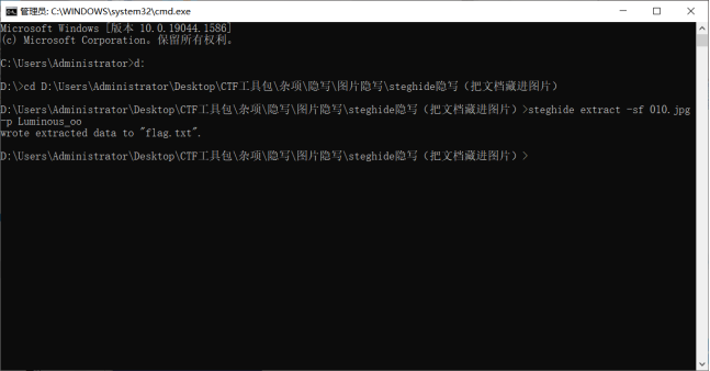 解法一:直接steghide隐写得到flag.txt 密钥在属性里面为Luminous_oo