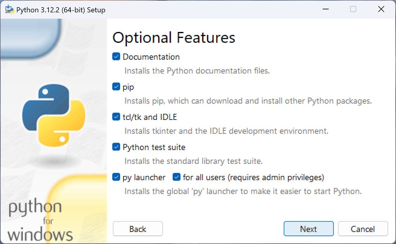 pip(必须勾选,用于Python后续第三方内库安装使用)