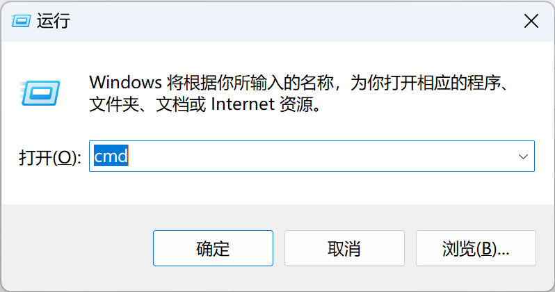 在本地电脑输入命令提示符:WIN+R输入cmd