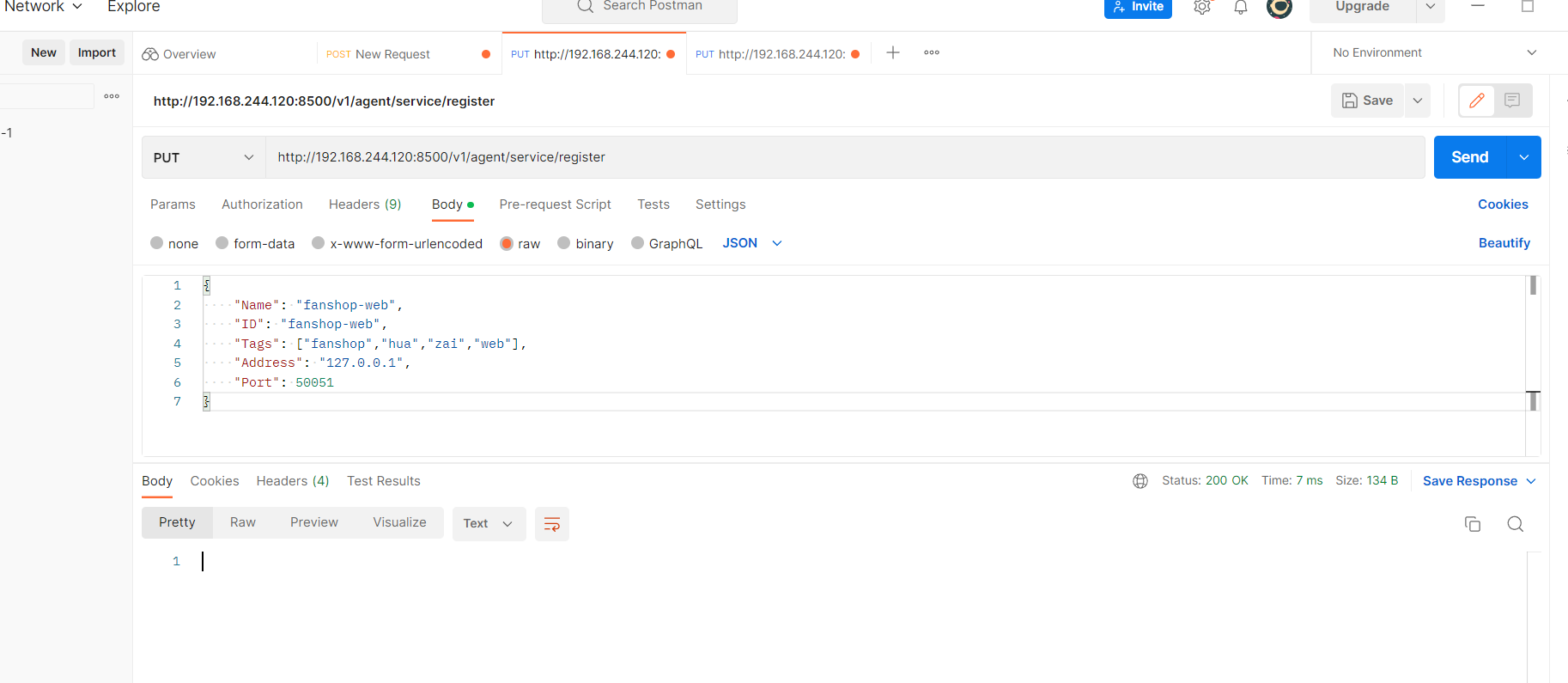 用postman发送请求 http://192.168.244.120:8500/v1/agent/service/register
