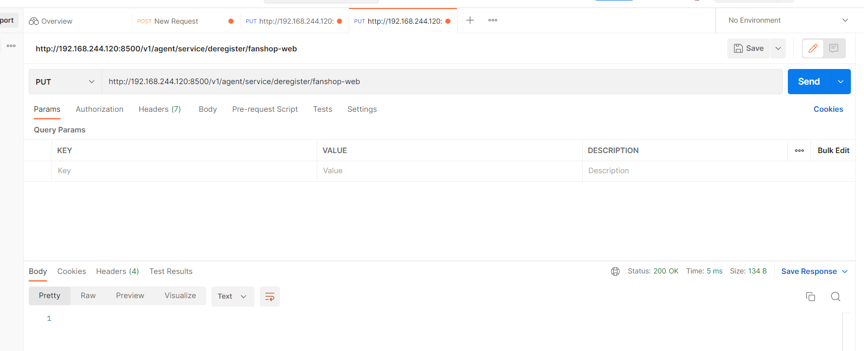 http://192.168.244.120:8500/v1/agent/service/deregister/fanshop-web //url最后面填自己要注销的服务,需要和上面注册的服务ID一样