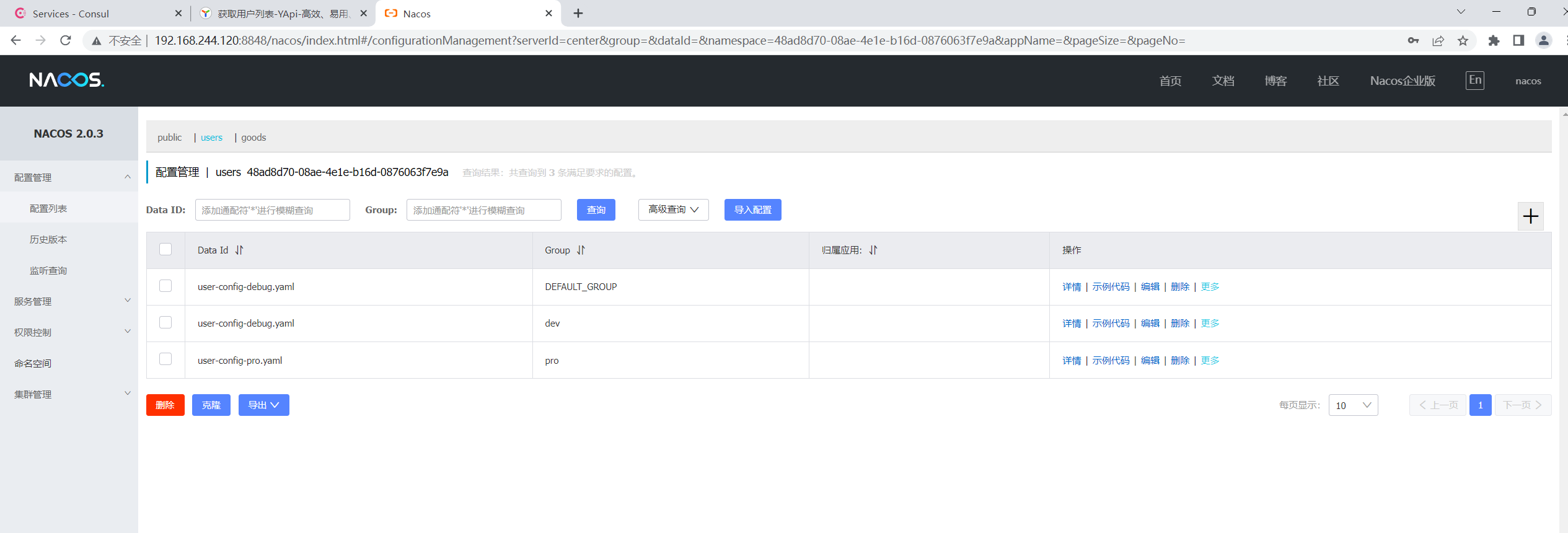 三. 命名空间:可以隔离配置集,将某些配置集放到某一个命名空间之下,命名空间一般用于区分微服务