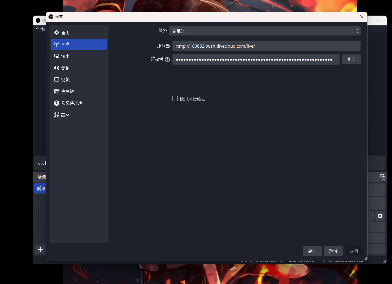 推流:生成OBS推流的服务器还有OBS串流密钥