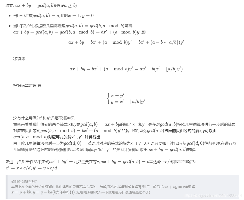 数学--数论--欧几里得定理和拓展欧几里得定理
