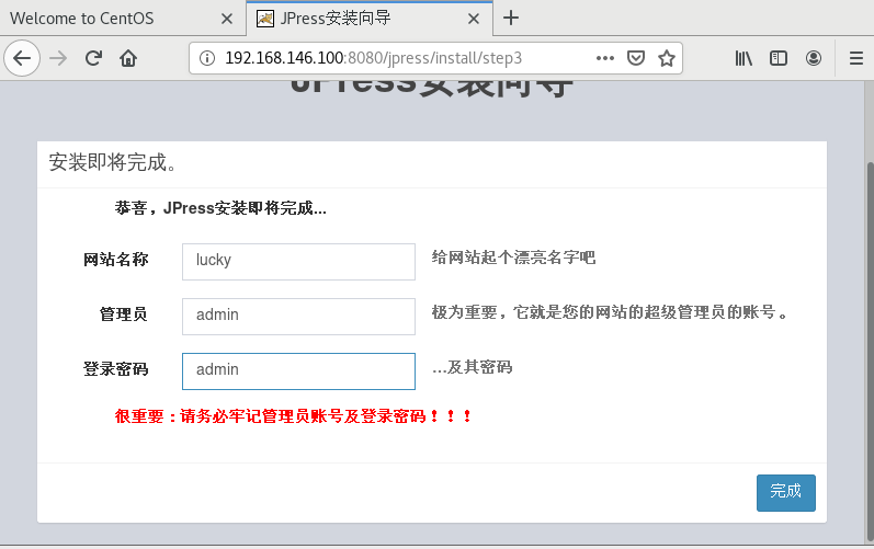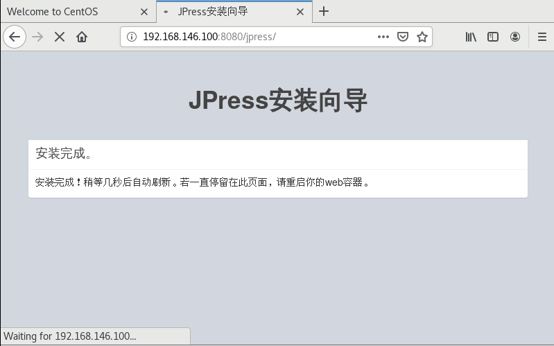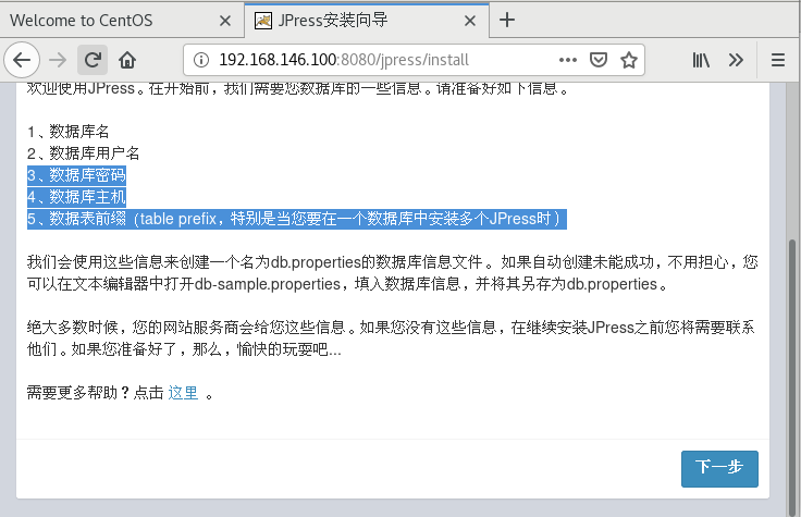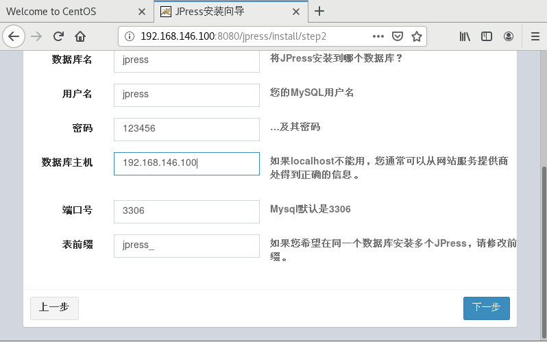 第八步:访问网页192.168.146.100:8080/jpress,安装jpress服务