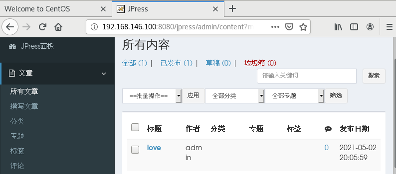 第一步:将jpress-web-newest.war文件上传到/opt/tomcat/webapps