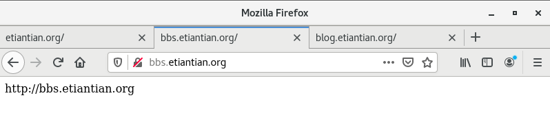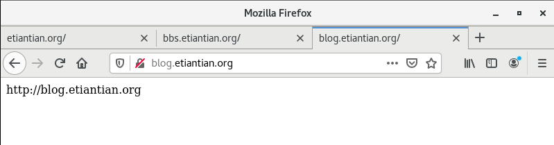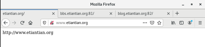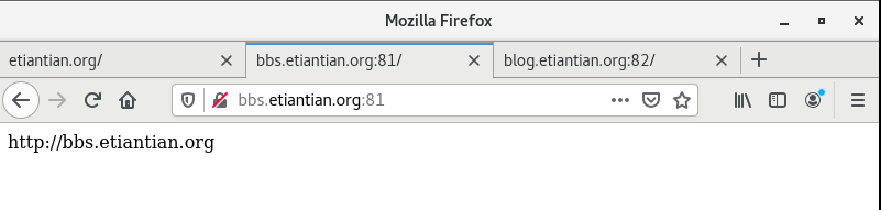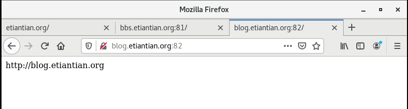 在浏览器中分别输入http://www.etiantian.org:80、http://bbs.etiantian.org:81、http://blog.etiantian.org:82网址,访问网页