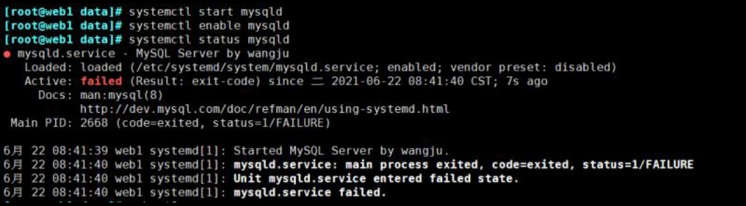 7月 02 14:50:33 web1 systemd[1]: Started MySQL Server by wangju.