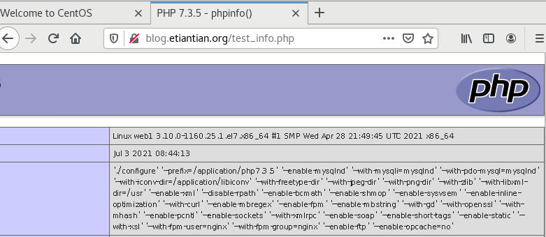 在浏览器中访问http://blog.etiantian.org/test_info.php,即可得下图的界面,表明Nginx配合PHP解析已经正常,然后可以删除文件test_info.php