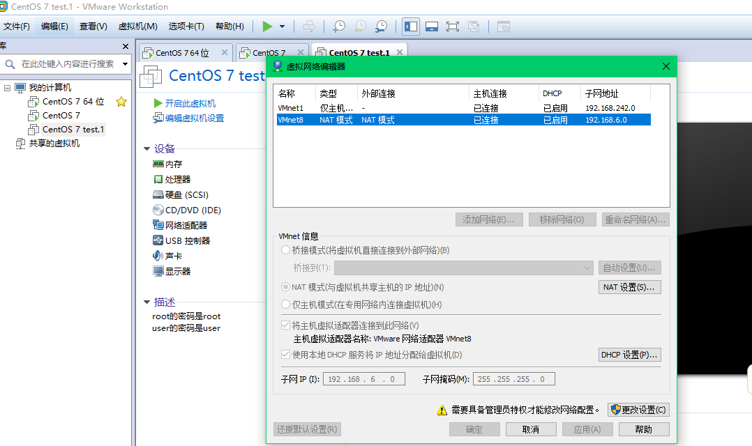 点击页面上的NAT 模式(由于我的网络配置模式是NAT,这里点击原本的网络配置就好),