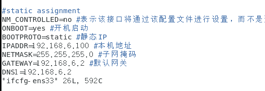 [root@localhost network-scripts]# vim ifcfg-ens33 #修改网卡配置文件