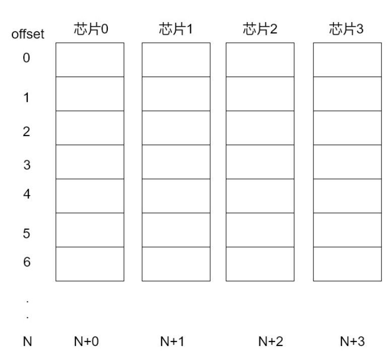当我们在我们的代码中申明变量时,我们通常是不用考虑也不会去做所谓的内存对齐的,因为这个工作本身是属于编译器去完成的。那我们的变量为什么不按照大小顺序地存放而是非要做所谓内存对齐?这个问题其实也是属于一个冲突问题,主要原因是内存的粒度是字节,即每一个BYTE都有唯一的地址,而cpu访存是按机器字(比如32位机器一次访存会取4Byte,无论我们访问的变量是什么类型的,比如我们只是获取一个char型变量,应该会做数据截断),理论上来说我们应该能够访问任意一个地址开始的四个字节。但是实际硬件是不支持的,这里我也是看到别人有说这个点,虽然抽象上,内存空间就像一块大的连续的一维数组,就是在我们真实的内存访问中,其实我们的是多个内存芯片同时工作,如图(别人的图用一下)。连续的四个字节其实是存储在这四个芯片上的,我们的地址,会转为offset,然后四个芯片同时给出自己offset的内容,组成四个字节传回给我们。比如我们有一段空间是0x00到0x40,如果我们按照四字节对齐访问,那我们cpu能直接访问的就应该是0x04,0x08,0x0c......这样的地址。比如0x00存了一个char型的变量,那我们其实就应该是访问了0x00然后拿出了4byte,按照数据类型截下来了相应的大小的数据(比如char 就是一个byte)。那比如0x01处还有一个放了一个int型的数据,这个四字节数据的前三个,应该是芯片2,3,4的offset0给出,最后一个字节应该是芯片1的offset1给出,这样至少需要两个offset,硬件不支持的话,肯定是没法访问的,这其实应该是所谓硬件支持不支持的关键原因。如果对齐访问的话,我们访问是四字节对齐的,那这个地址我们是无法直接访问到的,如果发生了对这个位置的访问,就会引起cpu fault。