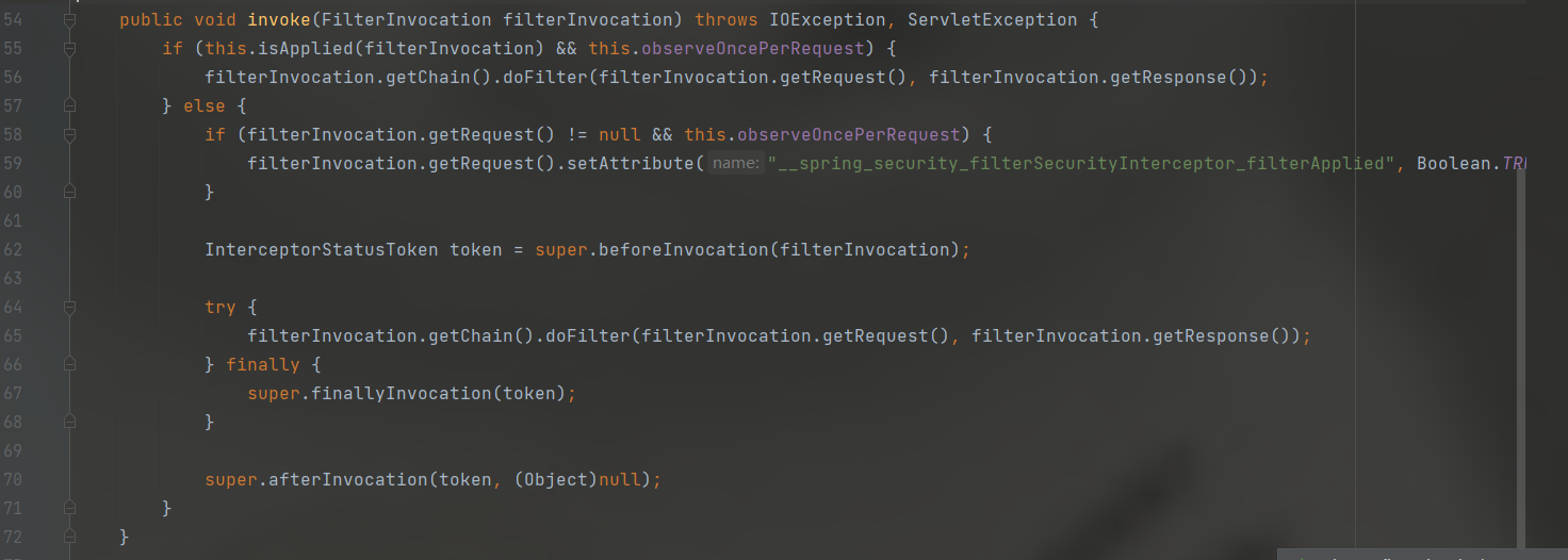 super.beforeInvocation(fi) 表示查看之前的 filter 是否通过。