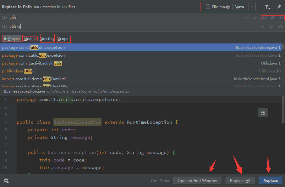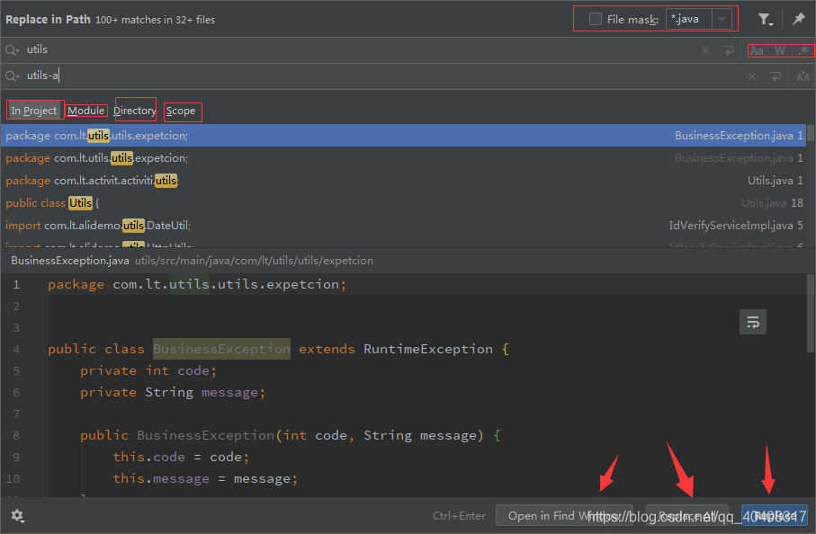 idea中的全局搜索与替换