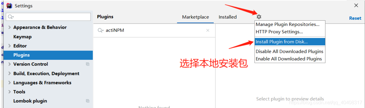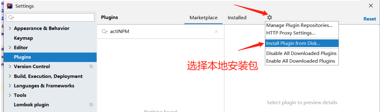 file -->setting->plugins >