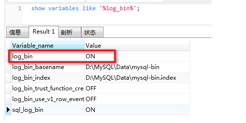 第一步:先查看binlog功能是否开启