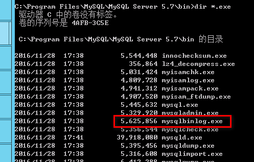 CMD命令符进行Mysql安装目录下,找到mysqlbinlog.exe,如果没有说明你安装的是假mysql.