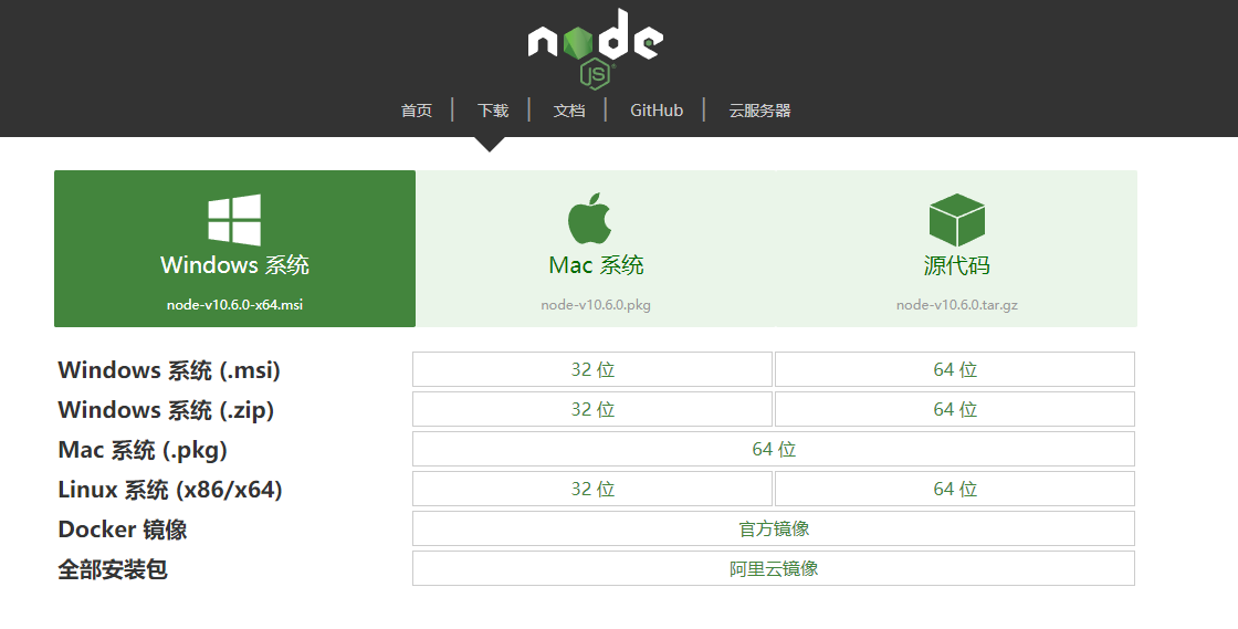 1、打开NodeJS的官网,默认的情况主页就提供了Windows版本的下载链接。中文官网地址(http://nodejs.cn)