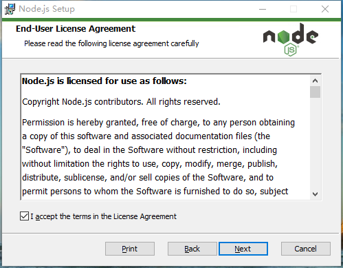 2、下载完成后双击下载好的nodejs文件开始安装,点击next进入下一步,勾选同意协议,继续下一步。然后选择安装的位置,默认是在C盘,改成D盘安装,这是个好习惯,建议保持。然后进入模块配置步骤。