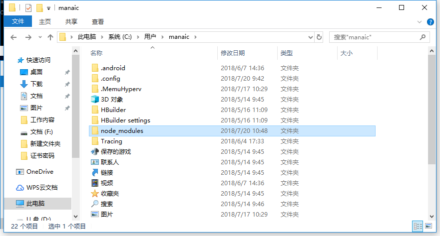 从图中可以看到,默认情况下把一下信息保存到C:\Users\v1\目录下,我们打开这个目录看看。可以看到这个目录底下有个node_modules目录,点开一看,如下面第二张图所示: