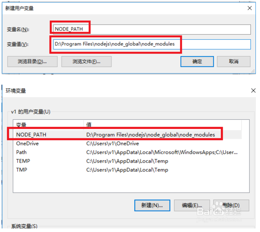 变量值填:D:\Program Files\nodejs\node_modules\填写好后点确定,然后就能看到我们配置好的NPM环境路径。