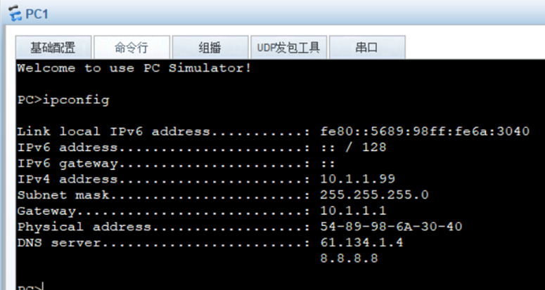 [R1-GigabitEthernet0/0/1]ip address 10.1.1.1 24