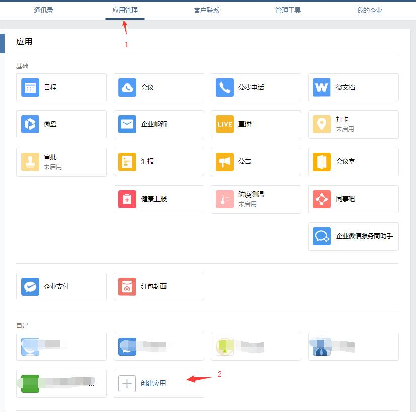 (2):应用创建完成之后我们就可以在应用中看到secret和agentid