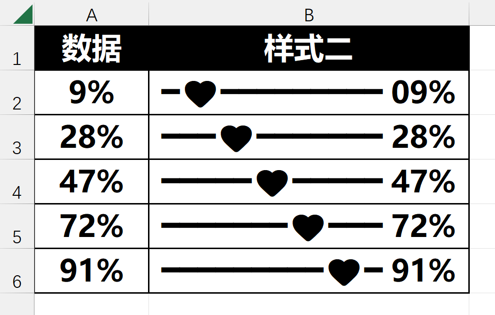 =REPT("━",ROUND(参数*10,0))&"🖤"&REPT("━",10-ROUND(参数*10,0))&TEXT(参数," 00%")