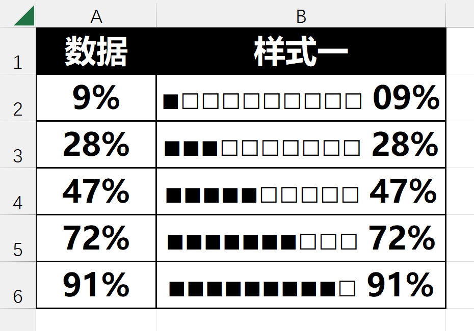 =REPT("■",ROUND(参数*10,0))&REPT("□",10-ROUND(参数*10,0))&TEXT(参数," 00%")