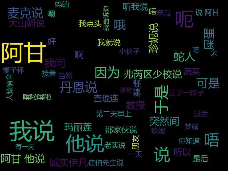 excludes={"但是","她说","总之",'之后','不过','而且','还有','然后','果然'}
