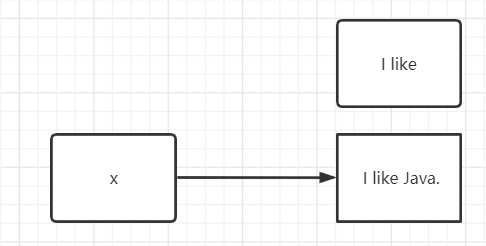 String x = "I like";