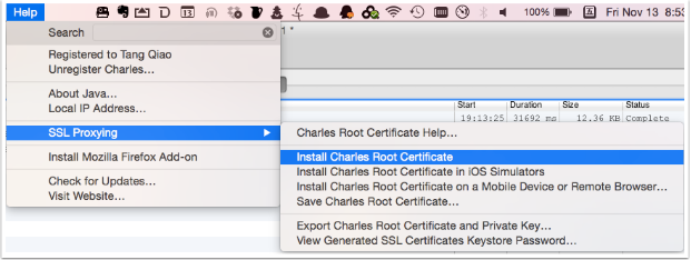 按照我们之前说的教程,在设备上设置好 Charles 为代理后,在手机浏览器中访问地址:http://charlesproxy.com/getssl,即可打开证书安装的界面,安装完证书后,就可以截取手机上的 Https 通讯内容了。不过同样需要注意,默认情况下 Charles 并不做截取,你还需要在要截取的网络请求上右击,选择 SSL proxy 菜单项。