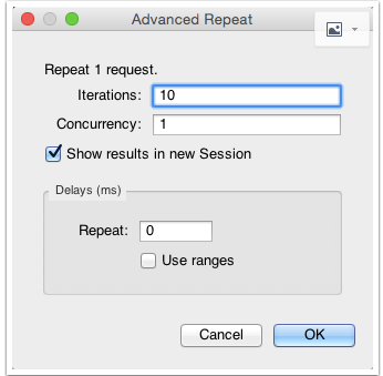 我们可以使用 Charles 的 Repeat 功能来简单地测试服务器的并发处理能力,方法如下。