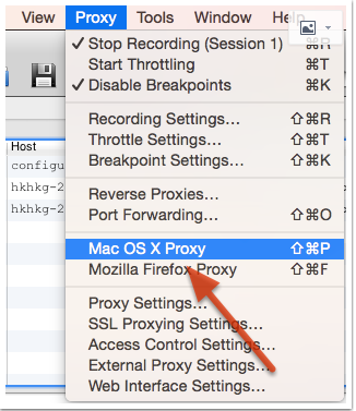 启动 Charles 后,第一次 Charles 会请求你给它设置系统代理的权限。你可以输入登录密码授予 Charles 该权限。你也可以忽略该请求,然后在需要将 Charles 设置成系统代理时,选择菜单中的 “Proxy” –> “Mac OS X Proxy” 来将 Charles 设置成系统代理。如下所示: