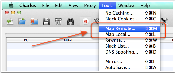在 Charles 的菜单中,选择 “Tools”–>“Map Remote” 或 “Map Local” 即可进入到相应功能的设置页面。