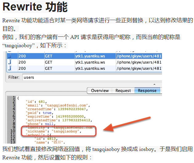 - Rewrite 功能适合对网络请求进行一些正则替换。