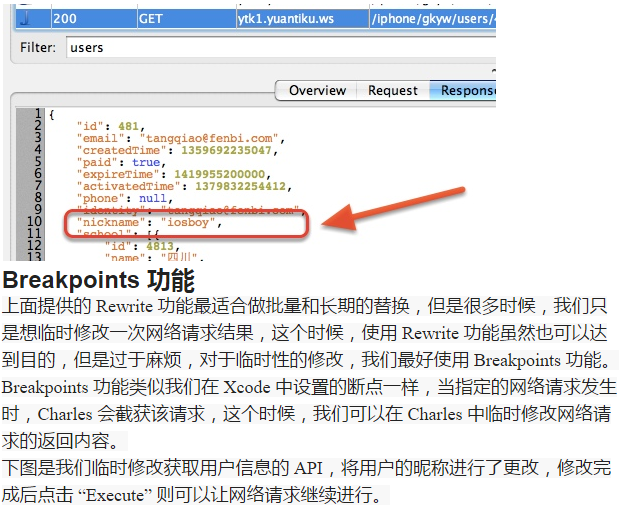 根据具体的需求,Charles 提供了 Map 功能、 Rewrite 功能以及 Breakpoints 功能,都可以达到修改服务器返回内容的目的。这三者在功能上的差异是: