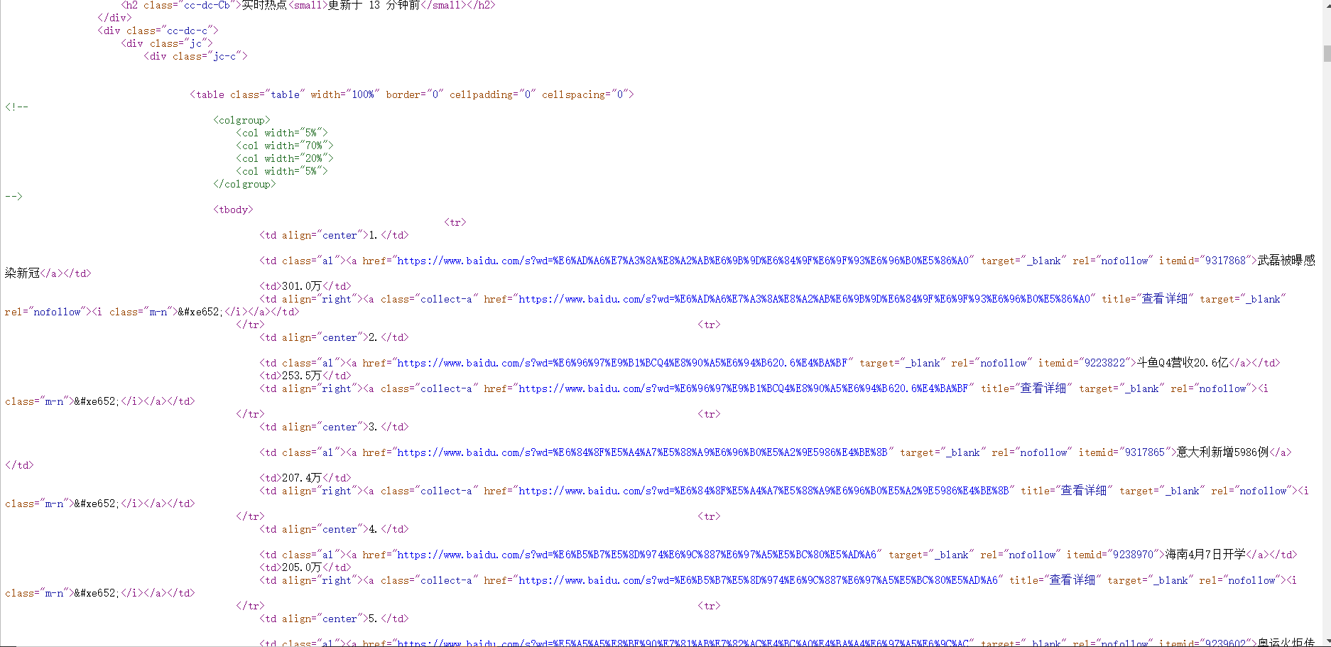 获取百度的热点前十名的标题信息及热度数据