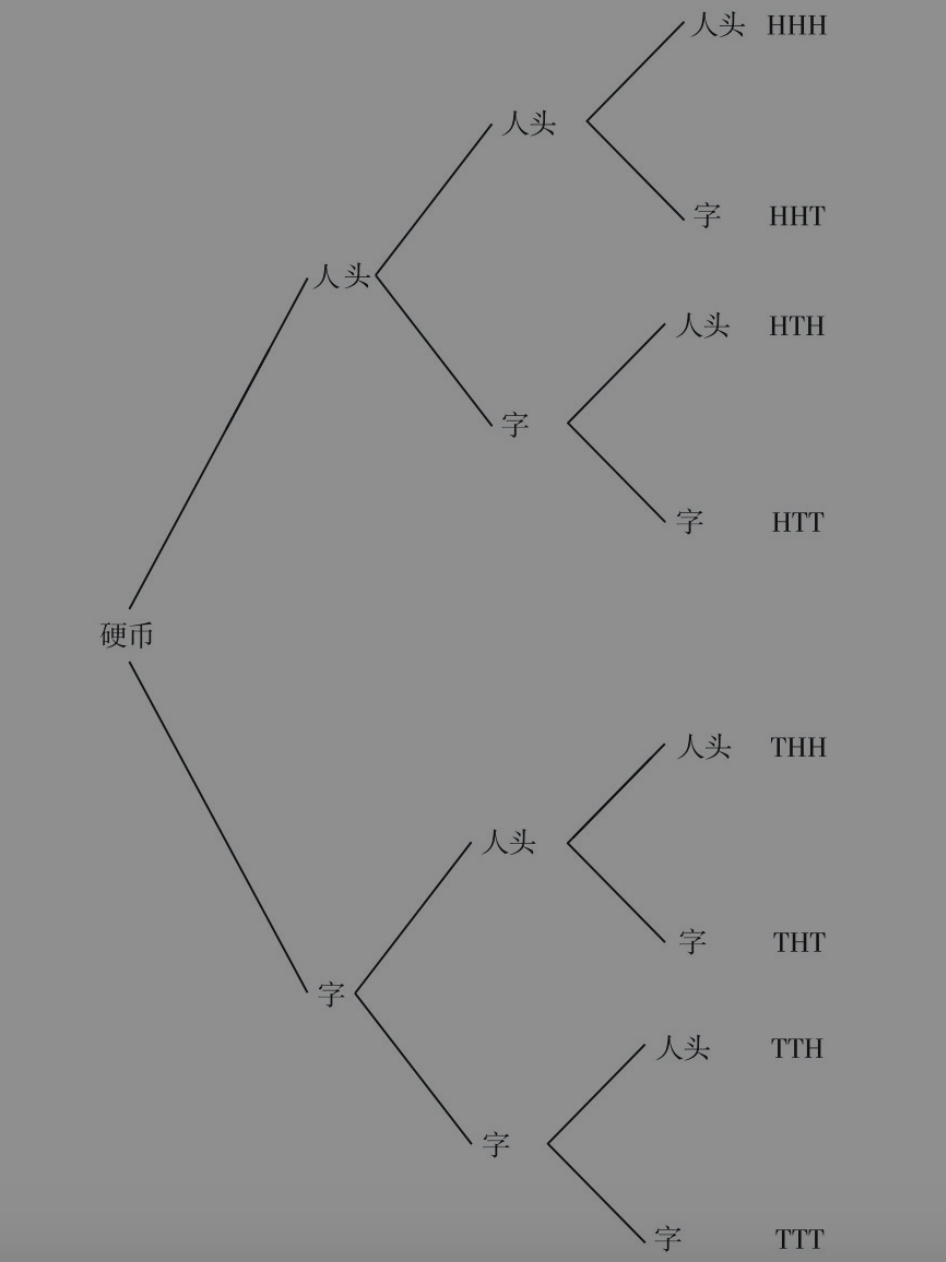 用决策树来描述掷三次硬币的结果。