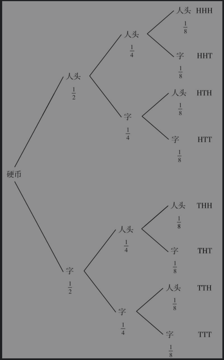 每一根树枝代表出现这种结果的概率,